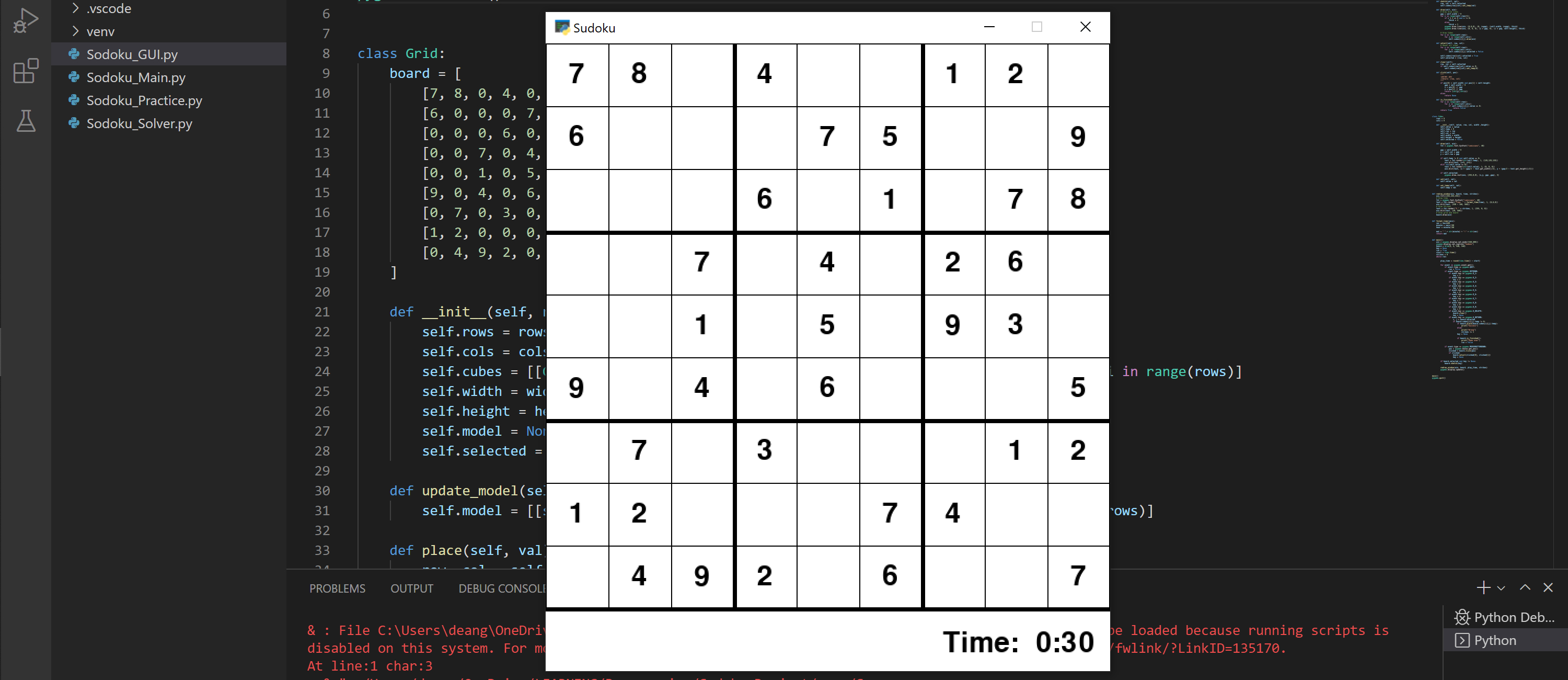 This fully functional program and GUI was built using the Python programming language, in conjunction with the cross-platform Pygame modules, to represent and play the game of Sudoku.